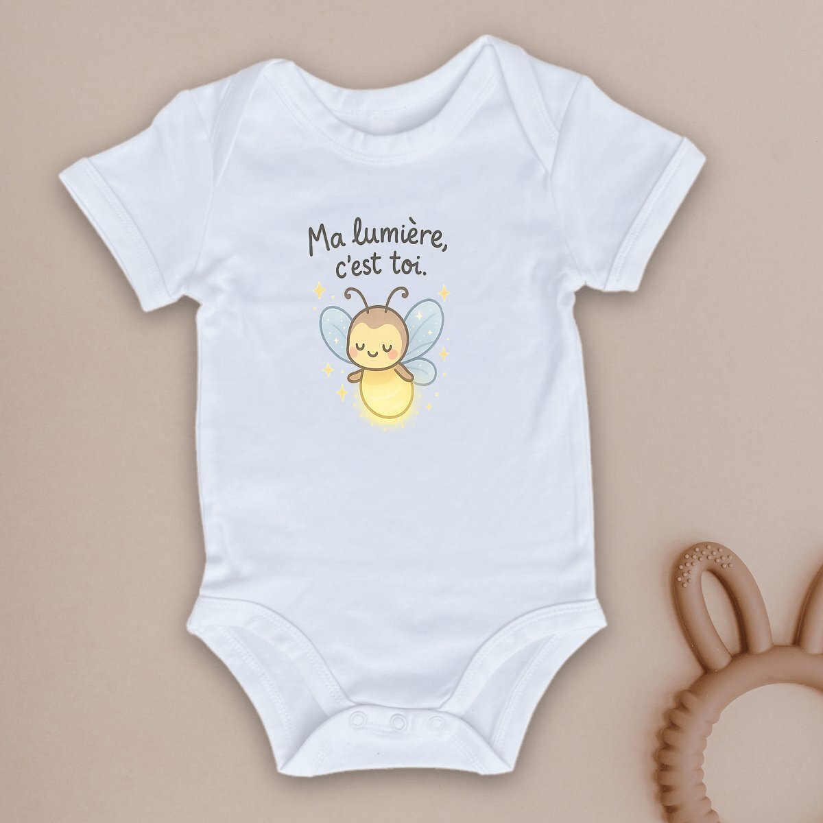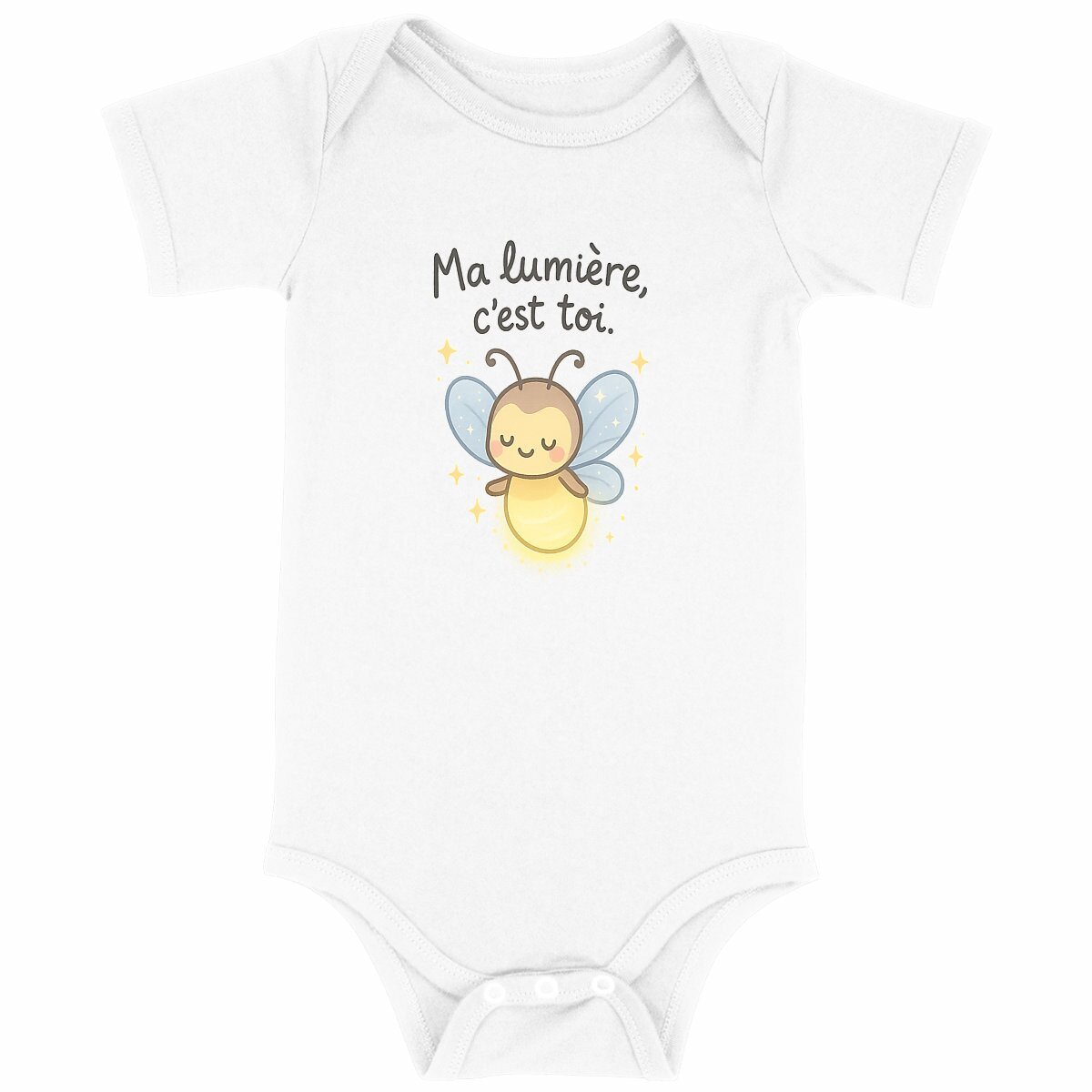 Imprimé avec le doux message ‘Luciole – Ma lumière c’est toi’, ce vêtement est parfait pour célébrer l’amour et la tendresse.