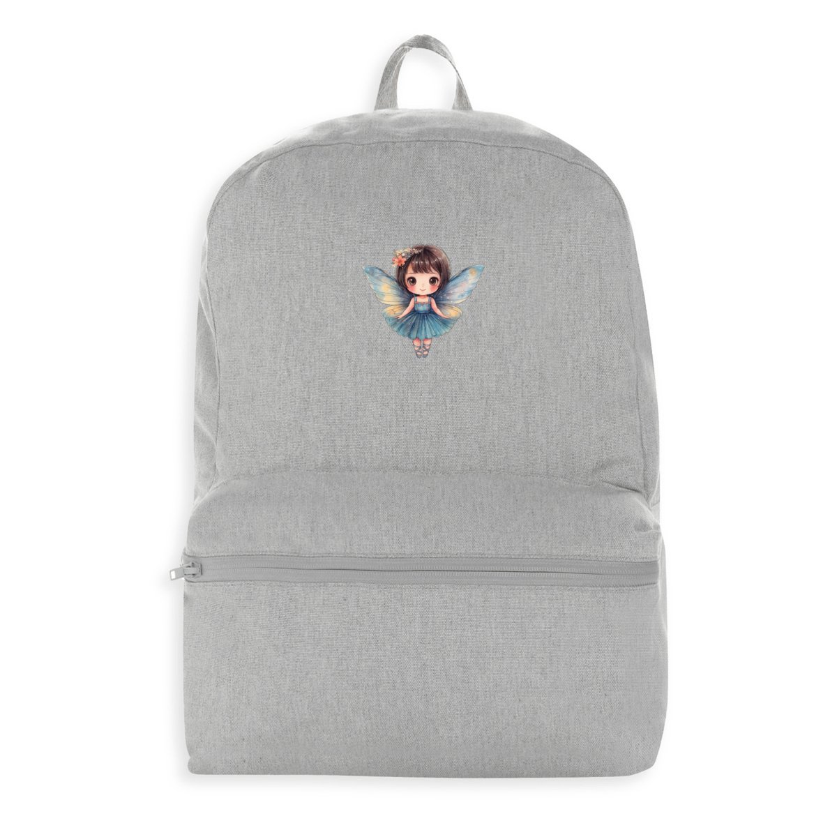 Découvrez notre sac à dos 100 % recyclé, orné d’une magnifique illustration de petite fée aquarelle.