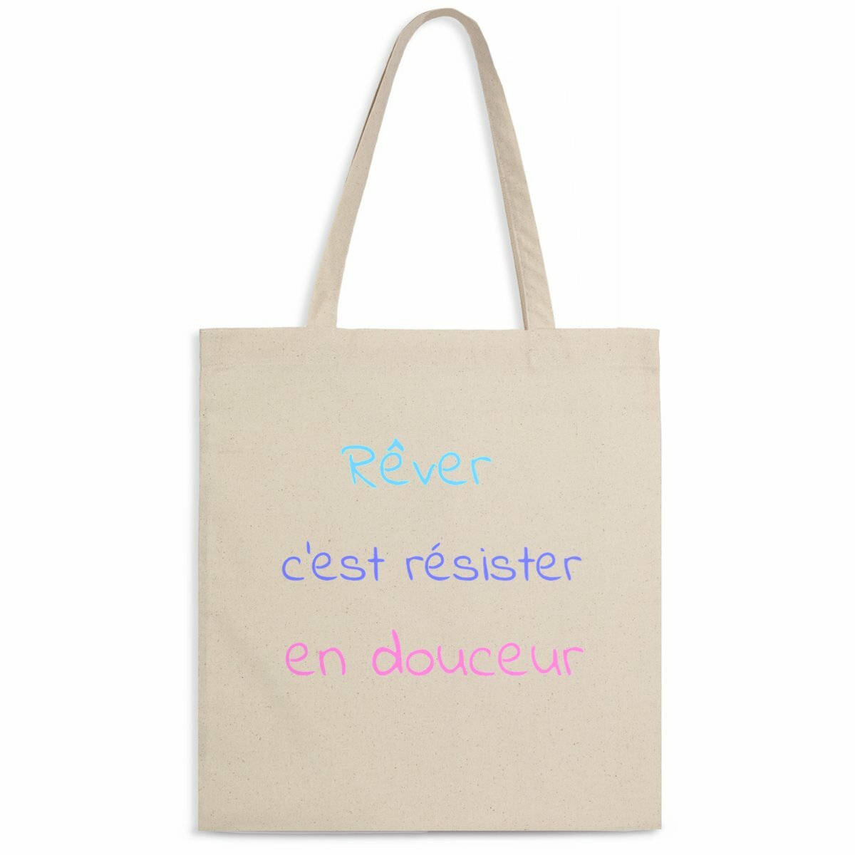 Conçu pour accompagner vos journées, il est parfait pour transporter vos essentiels tout en affichant un message positif : « Rêver, c’est résister en douceur ».
